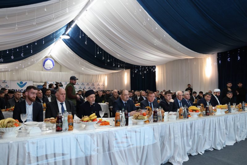 19 февраля в первый день благословенного поста во дворе Центральной Джума-мечети по сложившейся традиции был развернут шатёр Рамадана. Вместе с муфтием Дагестана, шейхом Ахмадом Афанди, глава республики принял участие в вечернем разговении. Шатёр одновременно вмещает до 500 человек. Расходы на его проведение в первый день священного месяца взял на себя Сергей Меликов. Ежедневно несколько тысяч верующих смогут здесь открывать пост. Благотворительную акцию проводят МуфтиятДагестана и фонд «Инсан». Инициативу ежегодно поддерживает глава республики. Сергей Меликов, приветствуя собравшихся, поздравил всех с наступлением священного месяца, назвав его временем духовного очищения, чистоты помыслов и милосердия. Он отметил, что дагестанцы всегда встречают Рамадан с особой радостью, собираются вместе за общим столом, укрепляя тем самым узы родства и дружбы. Глава региона подчеркнул, что проводимый ежегодно Шатер Рамадана – это замечательный социальный проект, несущий мир и укрепляющий согласие между народами. «Подобные встречи имеют не только религиозное, но и общественное значение, – добавил он. – Сегодня наше общество стремится к единству и солидарности. А они строятся именно на тех ценностях, которые во все времена почитались и исламом, и другими традиционными религиями России: это честность и справедливость, забота о ближнем и семье, уважение к родителям и детям и, конечно, любовь к Родине». Особое внимание в своем выступлении Сергей Меликов уделил важности межрелигиозного согласия в условиях проведения специальной военной операции. По его словам, боевое братство людей разных вер рождается на передовой из доверия и взаимопомощи перед лицом общей опасности. «В самых сложных испытаниях именно вера помогает не сломаться, сохранить человеческие качества и идти до конца, даже когда кажется, что сил больше нет», – подчеркнул руководитель республики. Глава Дагестана выразил особую благодарность муфтию республики, шейху Ахмаду Афанди, и всем неравнодушным землякам за поддержку военнослужащих и их семей, а также за участие в гуманитарных миссиях. Он отметил, что те, кто побывал в зоне СВО, могли убедиться: на поле брани не существует межрелигиозных конфликтов, а есть взаимная выручка и верность присяге. Сергей Меликов пожелал всем мира и благополучия, успехов в совершении благих дел.«Пусть Всевышний примет все посты и молитвы!»– заключил он.