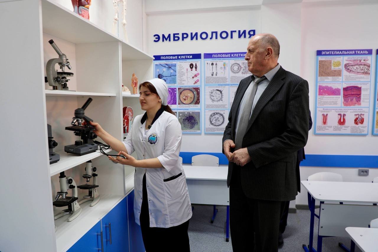 Во вторник, 10 марта, Председатель Правительства Республики Дагестан Абдулмуслим Абдулмуслимов принял участие в официальной презентации АНО высшего образования «Северо-Кавказский университет дружбы народов», расположенном в г. Махачкале. Перед началом торжественного мероприятия премьер-министр ознакомился с организацией образовательного процесса и текущими достижениями учебного заведения, а также примыкающего к вузу Северо-Кавказского гуманитарно-многопрофильного колледжа имени Имама Шамиля. Особое внимание было уделено внедрению современных образовательных технологий и программ, направленных на подготовку специалистов, востребованных на рынке труда. Экскурсию по вузу для премьер-министра провел ректор учреждения Тавлу Казакбиев. В состав вуза входит 5 факультетов, 5 кафедр и Международный институт Интегративной медицины. Университет ведет прием студентов уже второй учебной год и предлагает программы высшего образования по таким направлениям, как стоматология, фармация, клиническая психология и психология, а также среднего профессионального образования. Сегодня на двух факультетах здесь обучается 136 студентов очной формы. Абдулмуслим Абдулмуслимов ознакомился с новыми образовательными программами и студенческой жизнью университета, прошелся по учебным лабораториям и научным центрам, где оценил современную материально-техническую базу и условия для обучения студентов. ВУЗ уделяет большое внимание патриотическому воспитанию. В кабинетах, по которым прошелся премьер Дагестана, расположились информационные уголки и мемориальные стенды поэту Расулу Гамзатову, бывшему председателю Госсовета Магомедали Магомедову, первому Герою России Нурмагомеду Гаджимагомедову, олимпийскому чемпиону по боксу Альберту Батыргазиеву. Кроме того, на базе вуза функционируют фармацевтические и химические лаборатории, симуляционный, анатомический и гистологический кабинеты, кабинет информационных технологий. Заключены договоры с более чем 20 больницами и клиниками г.Махачкалы и г.Каспийска, что позволяет студентам проходить практические занятия в ведущих государственных и частных клиниках. Особое внимание премьер уделил стоматологическому кабинету, оборудованному для практического обучения студентов, где лично оценил практические возможности обучения будущих стоматологов. Каждый студент имеет возможность здесь оттачивать свои навыки, используя созданный манекен и необходимые стоматологические инструменты. Абдулмуслим Абдулмуслимов высоко оценил современные условия, созданные для обучения будущих специалистов, отметив важность практического опыта для студентов. «Такие кабинеты являются ключевыми для подготовки квалифицированных кадров, которые смогут обеспечить высокий уровень медицинских услуг в нашей республике», - подчеркнул он. Премьер также признался, что в последнее время часто посещает кабинет стоматолога, и потому это медицинское направление ему особо интересно. В ходе обхода по кабинетам вуза председателю правительства презентовали современный цифровой аналог анатомического интерактивного стола Пирогова. «Пирогов» является не просто 3D атласом анатомии, а комплексом из множества детально проработанных структур нормального и патологического строения с встроенными программами по след